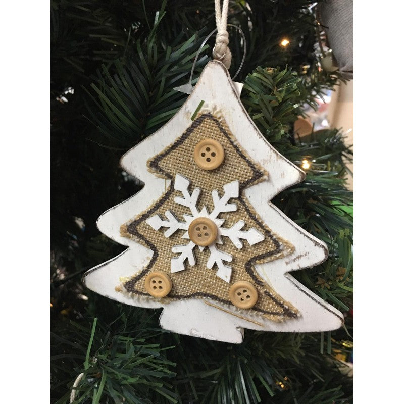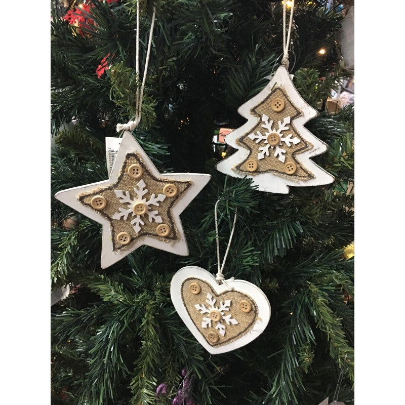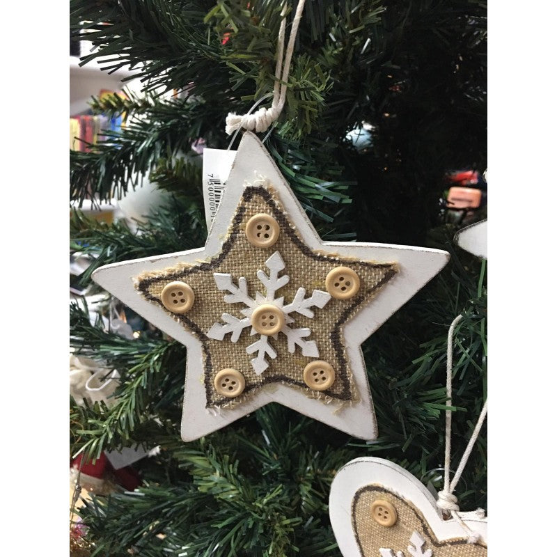 Decorato con juta, bottoncini e fiocco di neve in legno