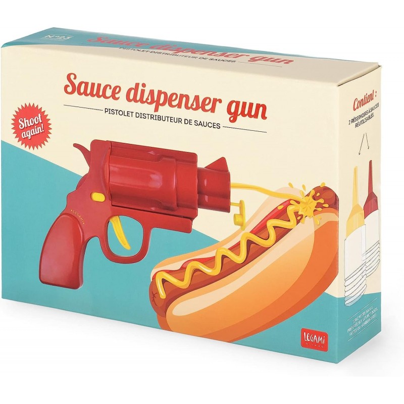 - Nella guerra delle salse, c'è un'arma segreta: la pistola spara salse di Legami! Dai ai panini una scarica di maionese, Riempi gli hot dog a colpi di senape, fai capire alle patatine che il ketchup è la morte loro. Hai a disposizione "due cartucce" dispenser intercambiabili, per non restare mai disarmato.