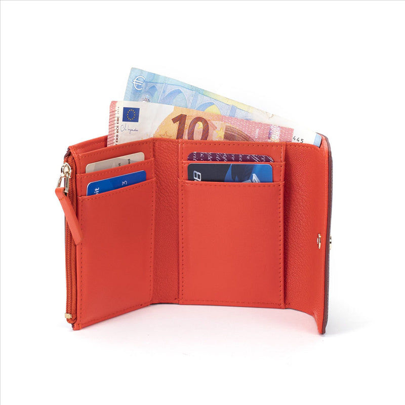Il colore prugna vibrante dona a questo portafoglio un tocco di originalità e stile. Perfetto per accompagnare qualsiasi outfit, dal casual al più elegante.