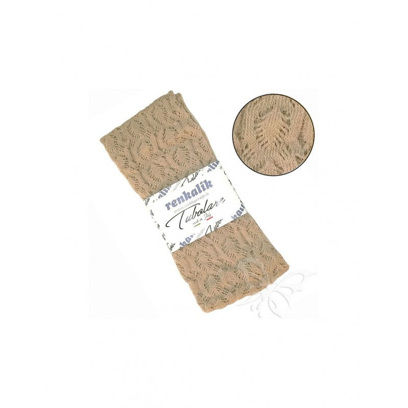 Tubolare maglia in cotone elasticizzato, pizzo traforato, color tortora, per realizzare pupazzeria e cucito creativo in genere.