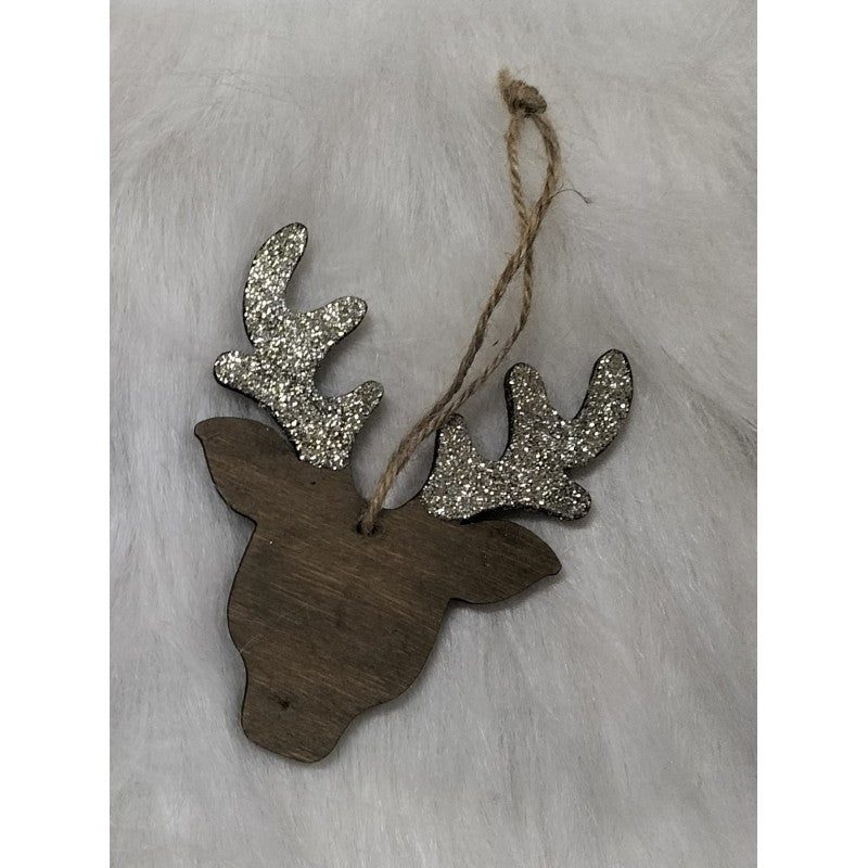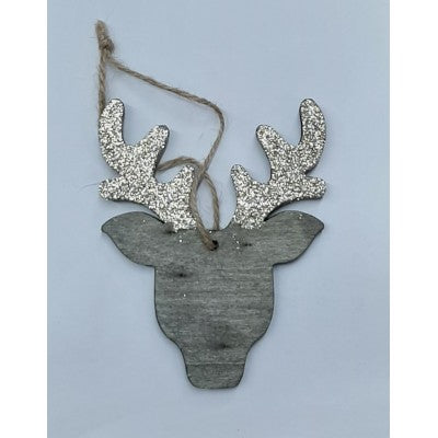 Sagoma in legno decorative: renne (color grigio con glitter oro)