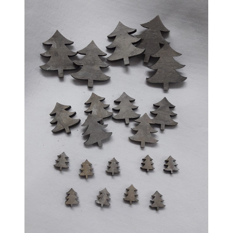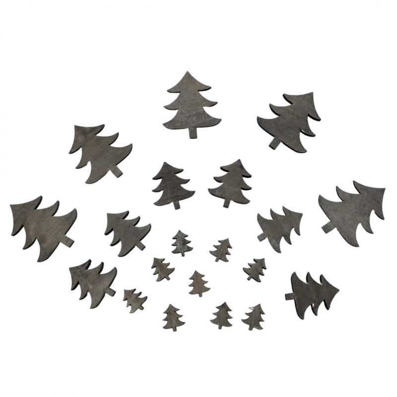 Sagome in legno decorative: abete (colore grigio). La confezione contiene: 5 figure da 7 cm, 6 figure da 4,8 cm, 9 figure da 2,4 cm (altezza). Spessore 7 mm.