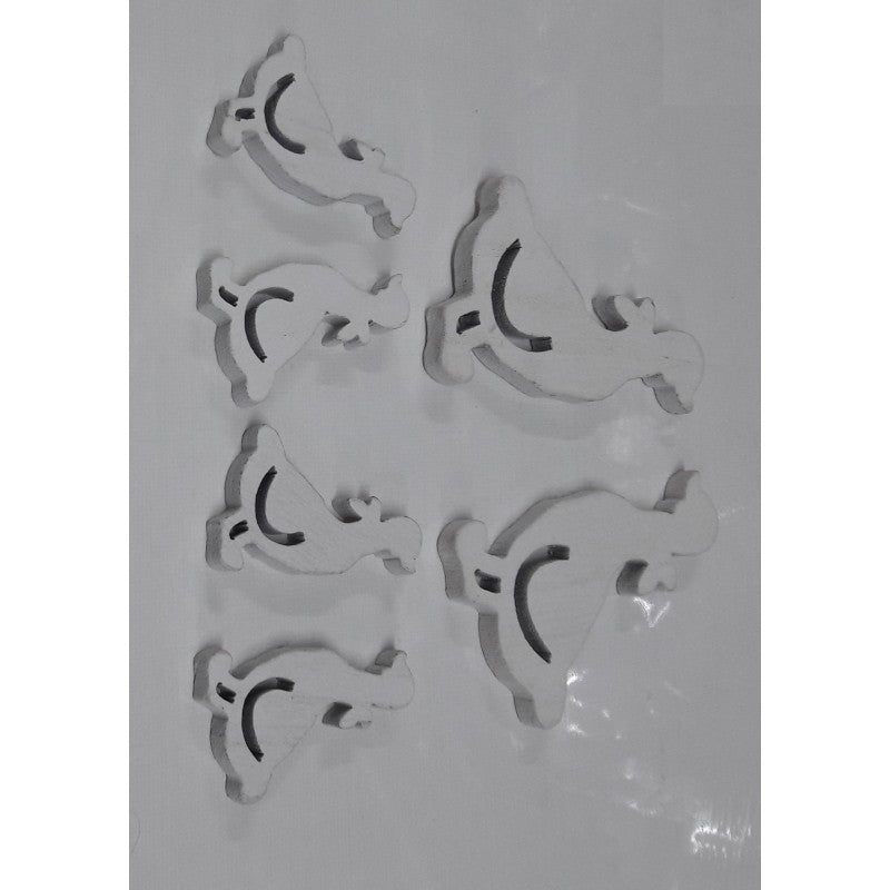 Sagome in legno decorative: paperelle (colore bianco). La confezione contiene: 2 figure da 8,5 cm, 4 figure da 5,5 cm (altezza). Spessore 7 mm.