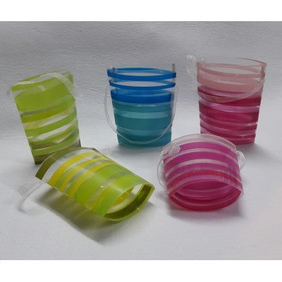 Simpatici secchielli in PVC, allegri e colorati, ideali per allestire/decorare le tue feste! 2 ROSA, 2 VERDI, 2 BLU.