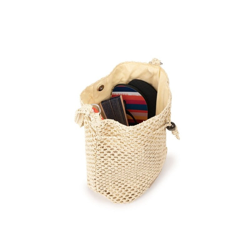 Morbido mini secchiello in similrafia, ideale per una passeggiata o un happy hour in spiaggia.