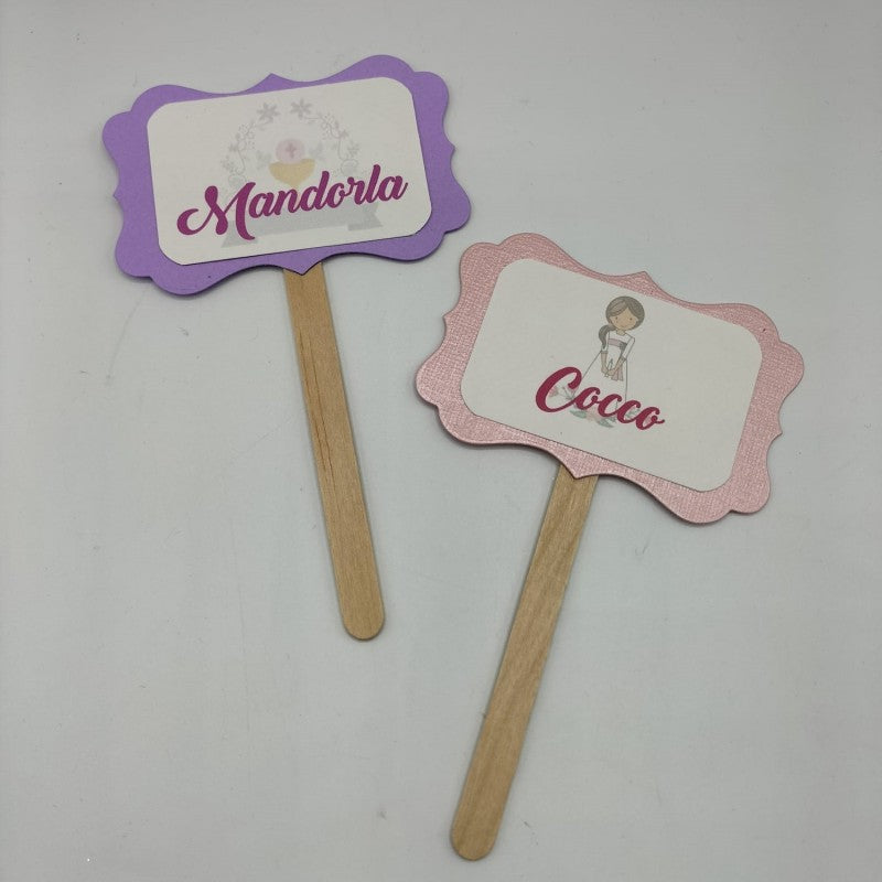 Il segnagusto è personalizzabile nei colori e nella forma del cartoncino in base al tema della tua festa