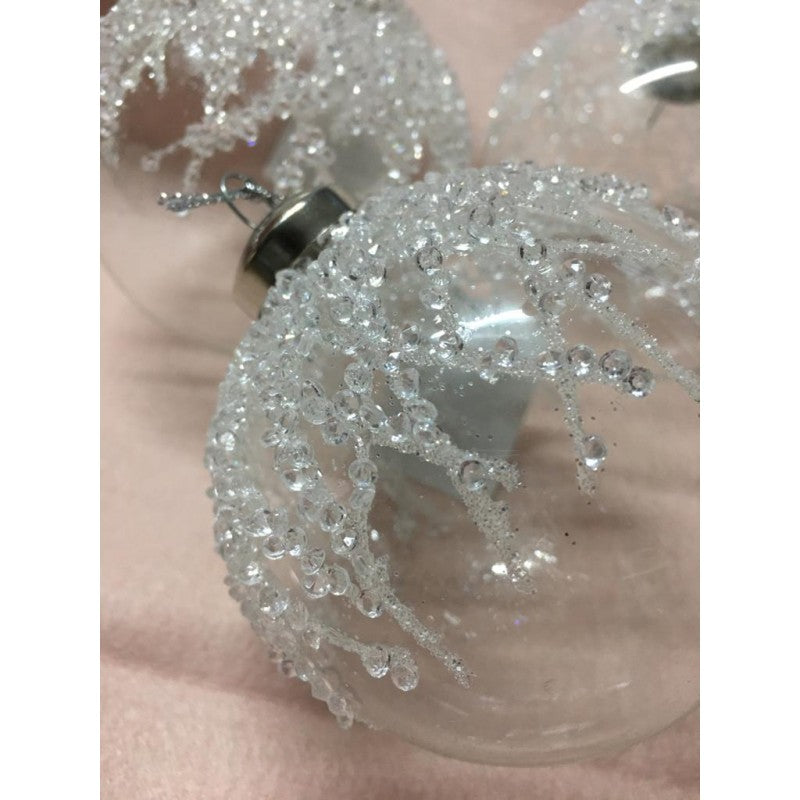 Palline in vetro impreziosite da strass e glitter che ricordano la neve