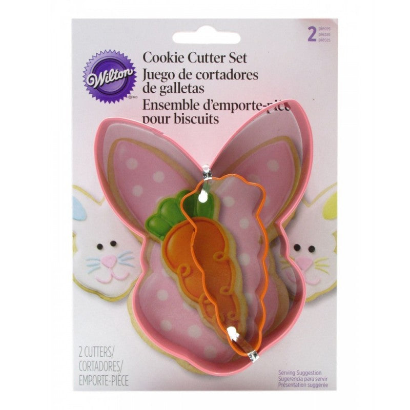 Set di tre tagliapasta in metallo a forma di carota e di coniglio adatti per la decorazione di cake design su torte, biscotti e prodotti di pasticceria in genere.