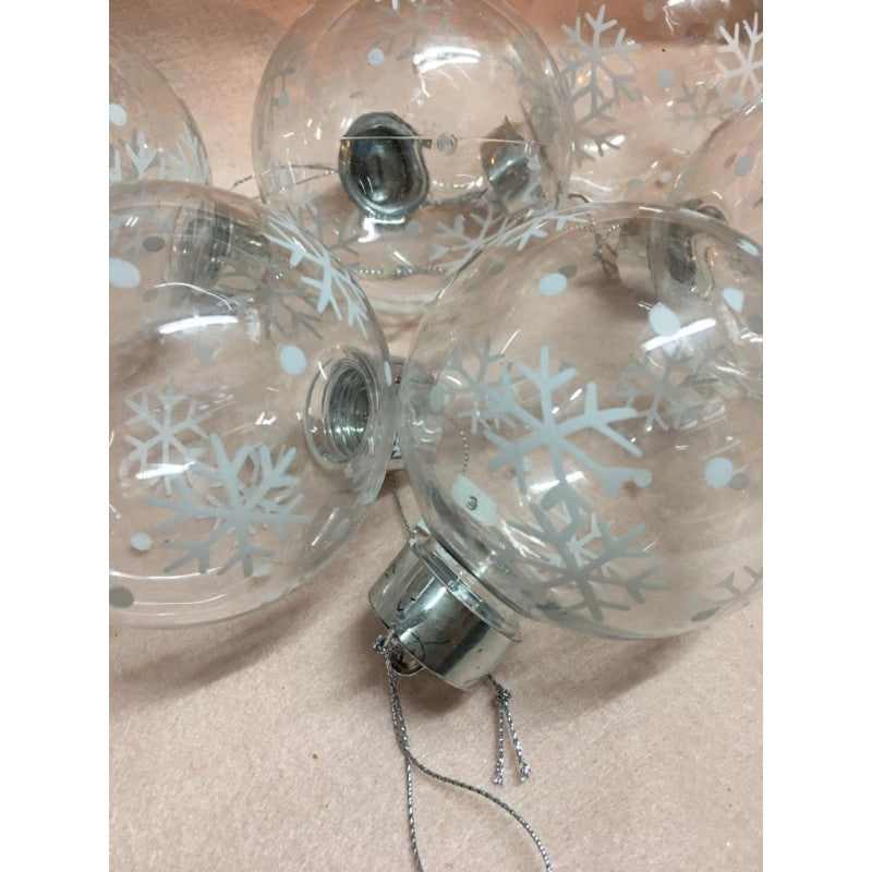 Palline in plastica trasparenti decorate con fiocchi di neve bianchi ideali per decorare il tuo albero!