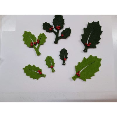 Set 7 foglioline di vischio in feltro realizzato a mano da noi con cura e attenzione, una decorazione unica e originale per creare il tuo Natale