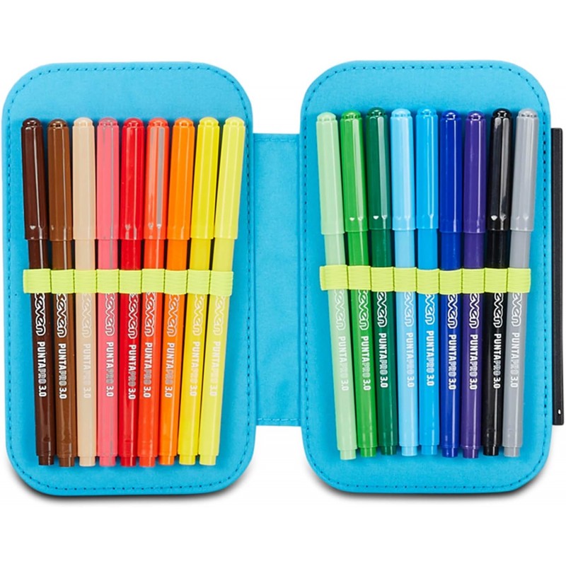 - ALTRE CARATTERISTICHE: Apertura singola tramite zip, plance amovibili, elastici interni per cancelleria. Contenuto 44 pezzi: 1 Penna cancellabile blu, 1 Penna a sfera rossa, 18 Pastelli, 18 Pennarelli, 1 Matita HB, 1 Colla, 1 Gomma, 1 Temperino barilotto 2 fori, 1 Righello, 1 Forbice in metallo