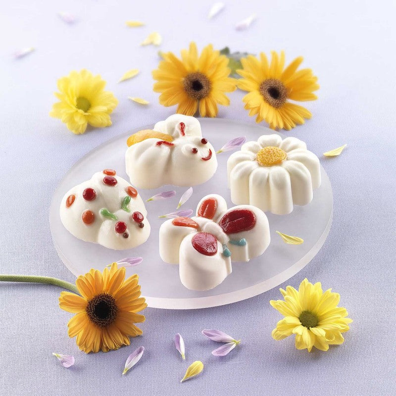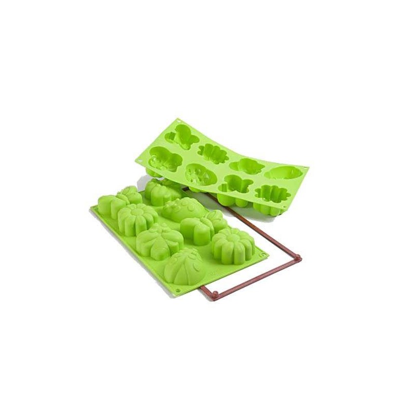 Springlife veste di primavera la tua tavola e si presenta come il giusto connubio di fiori, natura e colore. Questo stampo in silicone è possibile utilizzarlo in forno per dolci e salati ed in frigo per dei gustosi semifreddi. L'esclusiva ricetta, inclusa nella confezione, renderà la tua realizzazione di grande effetto e sicuro successo. Potrai realizzare 4 soggetti primaverili: fiore, farfalla, ape, coccinella. Stampo a 8 impronte.