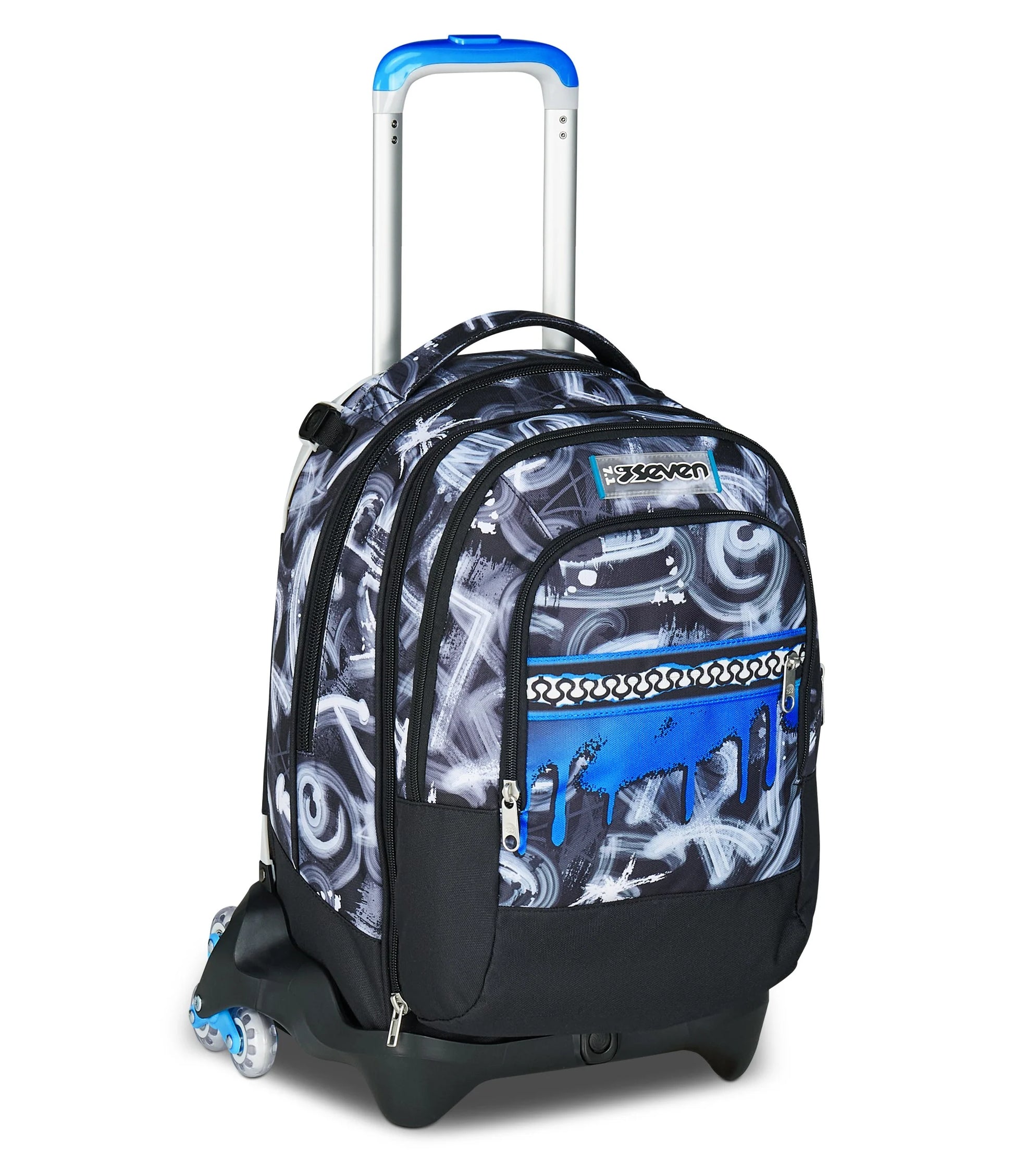 Affronta la scuola, lo sport o i tuoi viaggi con il trolley Jack 3 Ruote Detach di Seven, lo zaino-trolley che si adatta a ogni tua esigenza! Grazie al sistema di carrello sganciabile a 3 ruote, questo zaino ti offre la libertà di scegliere come trasportare i tuoi effetti personali.