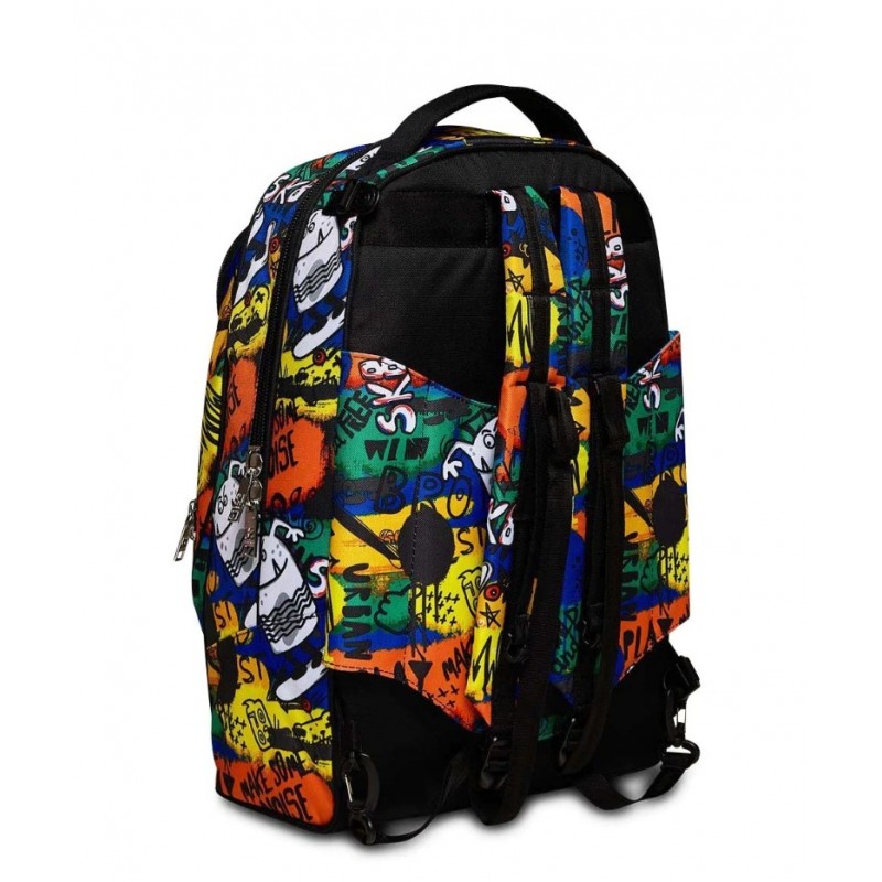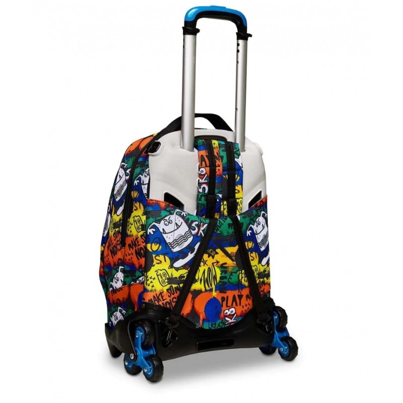 In poche semplici mosse da trolley divento zaino e viceversa. Il mio carrello ha fondo rinforzato e protezioni angolari per dare stabilità al trolley e protezione al contenuto. Lo sganci e divento uno zaino lavabile, maxi capiente, dotato di tasca frontale e comodo da indossare grazie a schienale e spallacci imbottiti e rivestiti in tessuto. Spallacci che, se mi usi come trolley, possono essere a scomparsa sollevarsi automaticamente tirando su la resistente doppia barra telescopica.