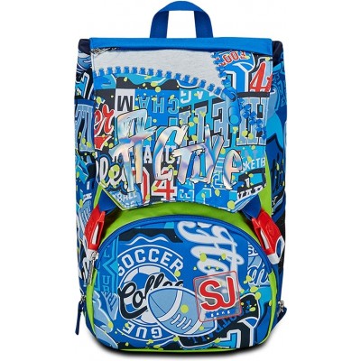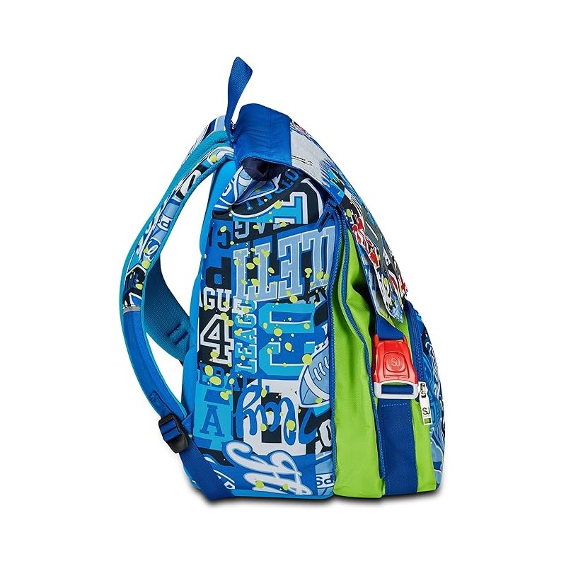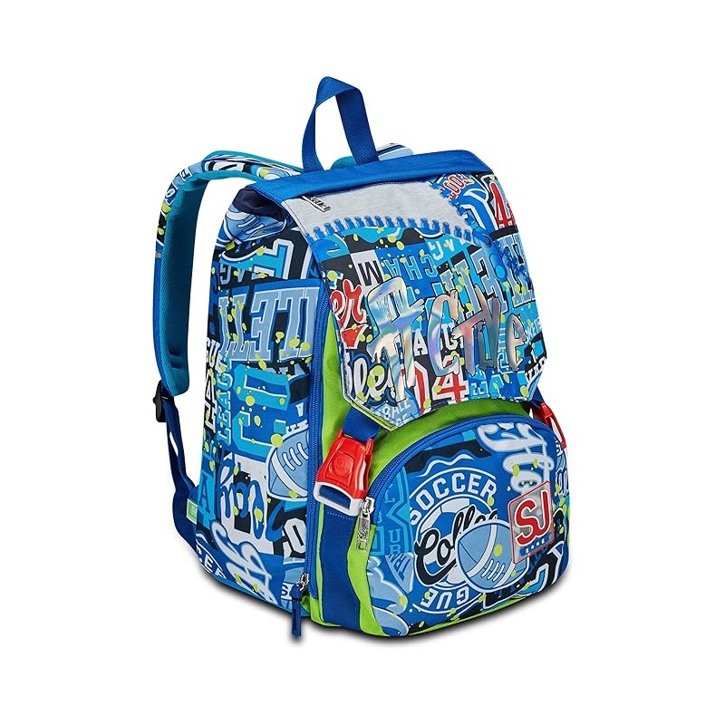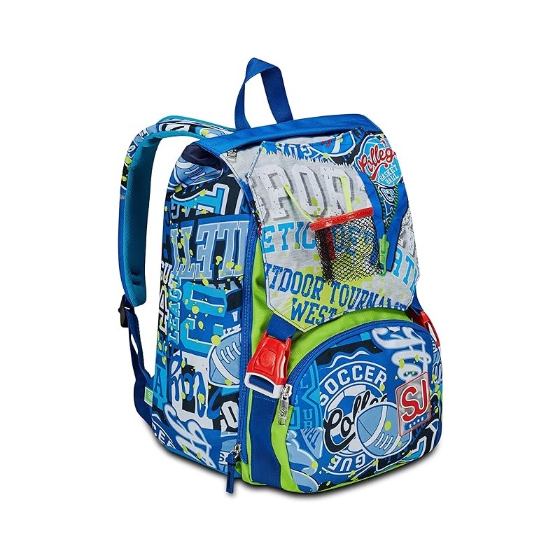 Ciao! Sono REALBASKET, lo zaino estensibile SJ GANG, pronto ad accompagnarti a scuola e farti giocare! Grazie al mio FLIP SYSTEM infatti puoi divertirti a cambiarmi aspetto ogni volta che vuoi, facendo spuntare anche un fantastico canestrino in rete 3D! Ho un doppio scomparto spazioso, di cui puoi aumentare facilmente la capienza tramite le zip laterali per poter accogliere e distribuire in modo ottimale anche i carichi più pesanti. Sono dotato di una tasca frontale e di una tasca porta borraccia, ma soprattutto sono davvero comodo da indossare sulle spalle, grazie allo schienale con preformature nei punti di contatto e agli spallacci imbottiti e traspiranti. In più, il fondo integrato mantiene la mia struttura inalterata, garantendo la stabilità del contenuto anche a pieno carico.