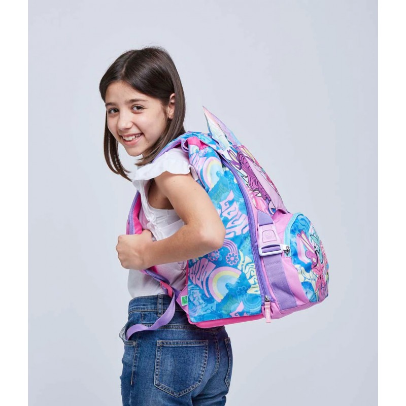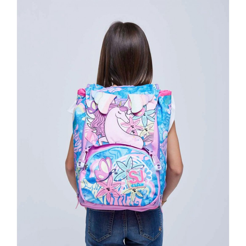 Ciao! Sono UNIWING, lo zaino estensibile SJ GANG con cui vai a scuola, ma puoi anche giocare. Grazie al mio SISTEMA AD ARIA attivabile dallo spallaccio con pulsante a pressione, infatti, puoi divertirti a muovere le mie fantastiche ALI GLITTER DI UNICORNO! Ho un doppio scomparto spazioso, di cui puoi aumentare facilmente la capienza tramite le zip laterali per poter accogliere e distribuire in modo ottimale libri, quaderni e tutto ciò che ti serve per la tua giornata, potendo sfruttare anche la tasca frontale. Inoltre, sono davvero comodo da indossare sulle spalle, grazie a schienale e spallacci confortevoli. In più, il fondo integrato mantiene la mia struttura inalterata, garantendo la stabilità del contenuto anche a pieno carico.