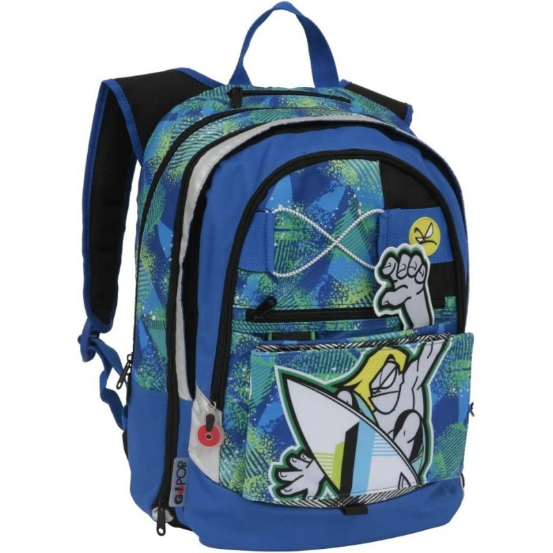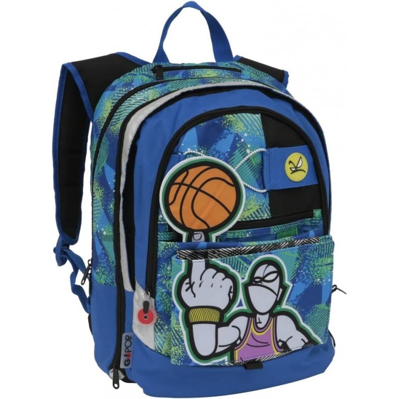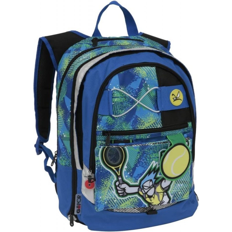 GOPOP è il brand Giochi Preziosi dedicato al mondo scuola per interpretare i gusti e le esigenze delle nuove generazioni. Lo zaino a tema Sport GOPOP è uno zaino per sorprendere, per emozionare, per stupire! Estensibile, è dotato di una cerniera per aumentare la capacità di carico (+ 9 cm). La forma è arrotondata "Round shape", lo schienale imbottito, ha 3 scomparti e tasche interne per merenda e accessori, spallacci ergonomici imbottiti e avvolgenti. La tasca esterna nasconde 4 elementi POP UP per personalizzare il tuo zaino! Solo con GOPOP! puoi scegliere ogni mattina lo stile giusto per te! Comodo, capiente e sempre diverso, GOPOP! è lo zaino che cambia con te!