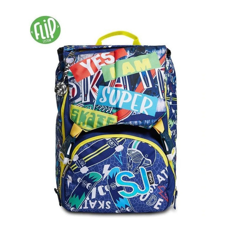 - Sono il sorprendente zaino estensibile SJ Gang! Mi piace unire il gioco e la comodità per affrontare insieme a te la scuola. Sono dotato di un charm e del FLIP SYSTEM: un sistema di pattine sfogliabili con diverse grafiche. Ti sembrerà di avere uno zaino sempre diverso! Ho un doppio scomparto, la cui capienza si può moltiplicare grazie alle zip laterali. Con lo schienale Ergosystem e gli spallacci imbottiti sono comodo da indossare, mentre il fondo integrato rende stabile la struttura.