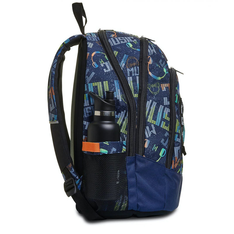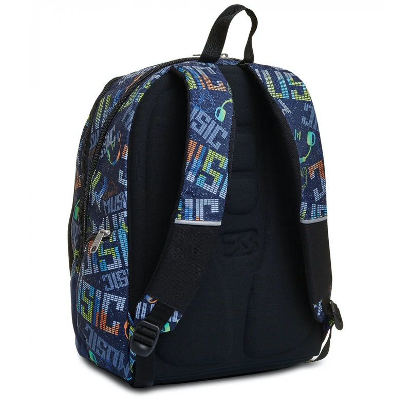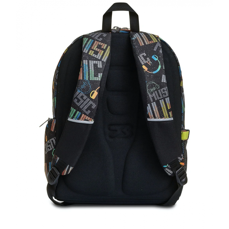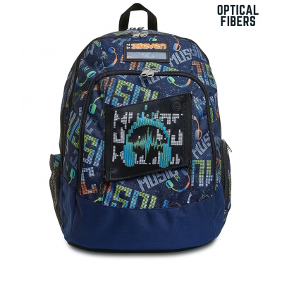 Lo zaino Seven Advanced MUSICBRIGHTING, curato nei minimi dettagli, è dotato di una fantastica grafica con cuffie in fibre ottiche che puoi divertirti ad accendere ogni volta che vuoi tramite l’apposito pulsante. L’inserto su cui sono posizionate è removibile per permettere il lavaggio dello zaino, che è comodo da portare sulle spalle grazie allo schienale Ergosystem preformato e agli spallacci imbottiti, traspiranti e con inserti rifrangenti. Il fondo integrato, poi, ne mantiene inalterata la struttura anche a pieno carico, garantendo la stabilità del contenuto. Nel suo capiente e spazioso doppio scomparto c’è posto davvero per tutto quello che ti serve, anche per il tuo notebook e la tua borraccia, potendo contare anche sulle sue numerose e pratiche tasche.