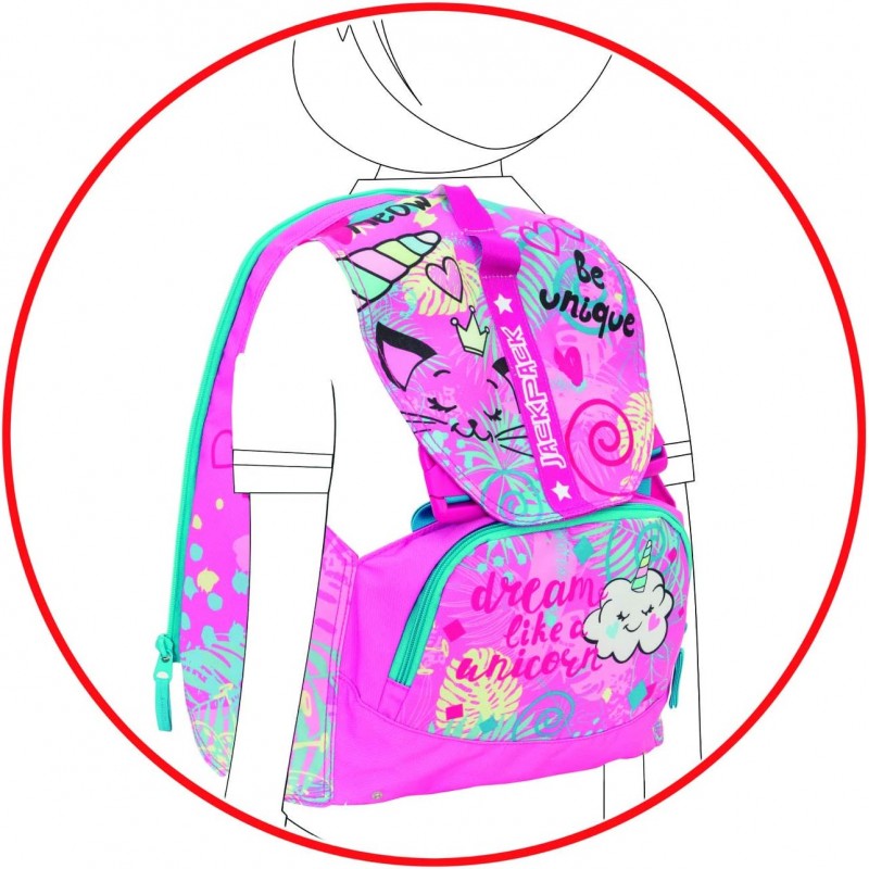 JACKPACK è lo zaino scuola che si trasforma, puoi staccare la parte frontale dal tuo zaino e indossarlo come una pettorina.