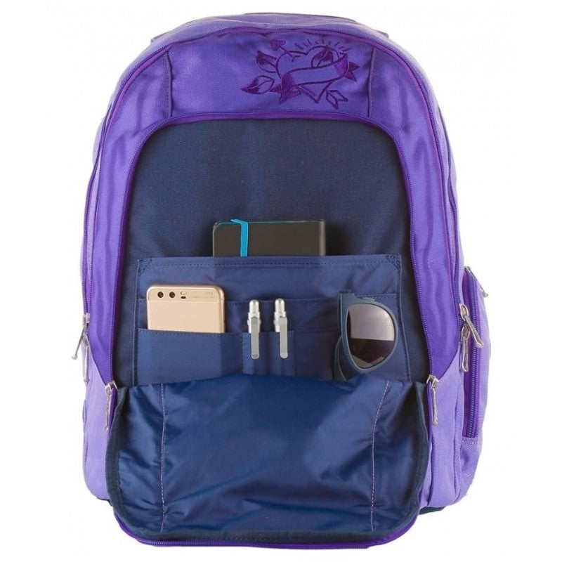 Zaino con supporto usb per caricabatteria sulla tasca laterale, tasca interna porta Notebook, secret pocket interna, inserti e logo Seven rifrangenti.Colore: Violet.
