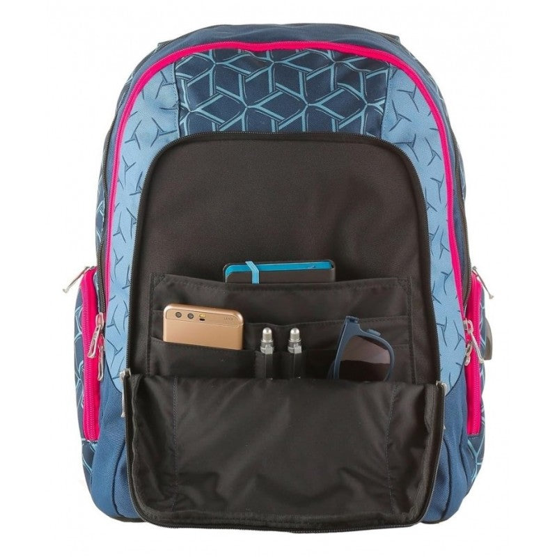 Zaino new advanced Dice Boy, per essere sempre alla moda, anche a scuola. Schienale ergosystem preformato con fondo integrato; spallacci soft foam imbottiti e rivestiti in tessuto e rete traspirante; patch ricamato. Zaino con supporto USB per caricabatteria sulla tasca laterale esterna, tasca interna porta Notebook, secret pocket interna, inserti e logo Seven rifrangenti.