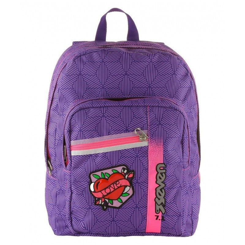 Zaino outsize Rebel Girl, per essere sempre alla moda, anche a scuola! Schienale ergosystem preformato con fondo integrato; spallacci soft foam imbottiti e rivestiti in tessuto e rete traspirante; patch ricamato. Zaino con tasca frontale attrezzata per organizzare gli accessori più piccoli inserti e logo Seven rifrangenti.