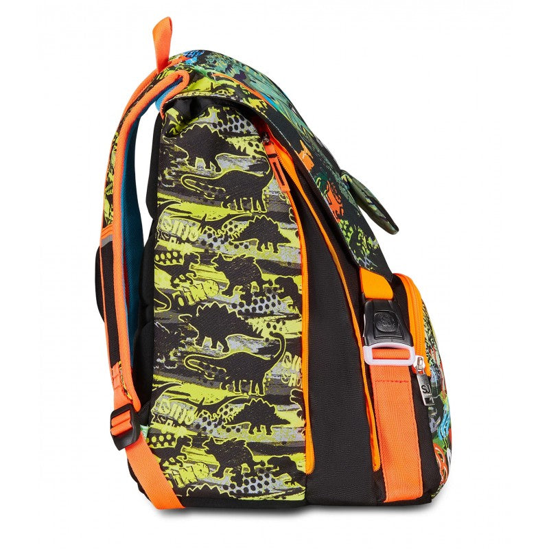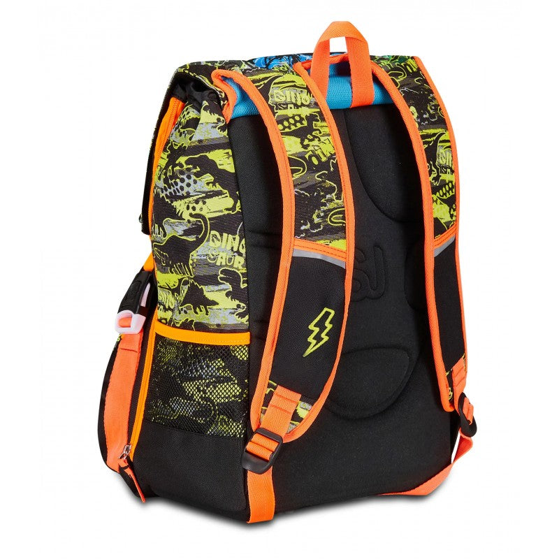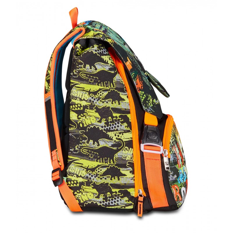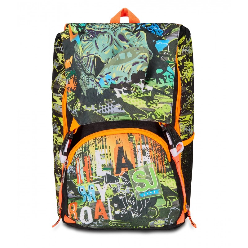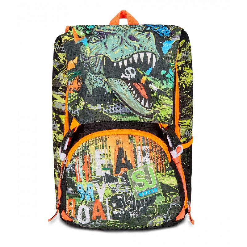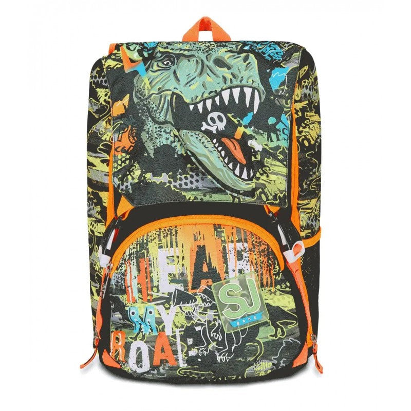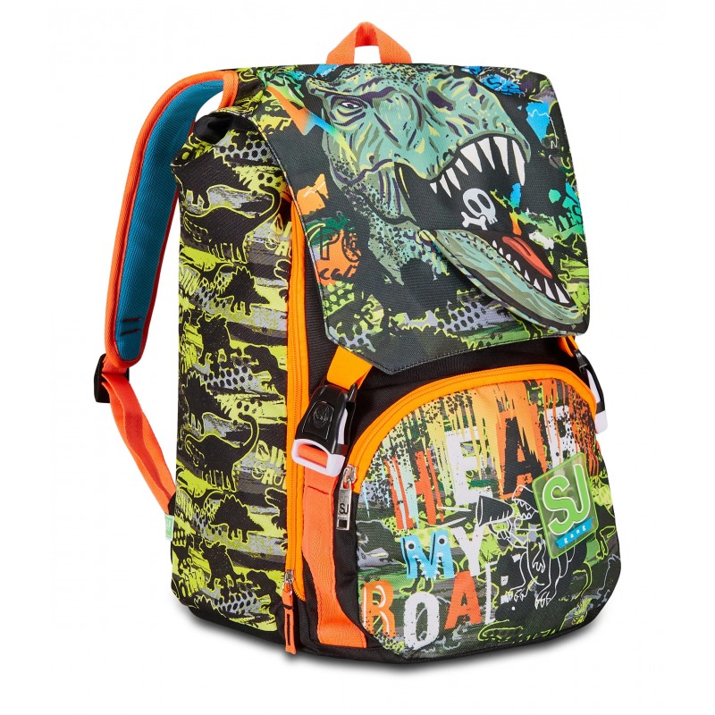 Ciao! Sono REXME, lo zaino estensibile SJ GANG con cui vai a scuola e con cui puoi giocare aprendo e chiudendo la mia BOCCA DA T-REX! Ho un doppio scomparto spazioso, di cui puoi aumentare facilmente la capienza tramite le zip laterali per poter accogliere e distribuire in modo ottimale libri, quaderni e tutto ciò che ti serve per la tua giornata, potendo sfruttare anche la tasca frontale. Inoltre, sono davvero comodo da indossare sulle spalle, grazie a schienale e spallacci confortevoli. In più, il fondo integrato mantiene la mia struttura inalterata, garantendo la stabilità del contenuto anche a pieno carico.