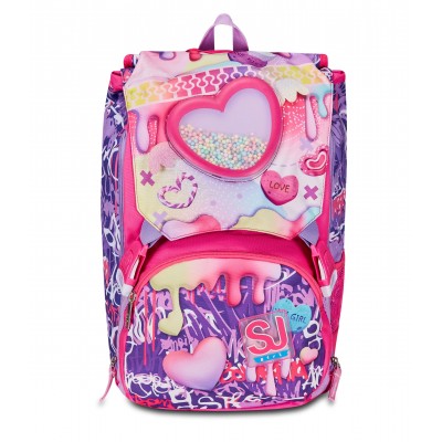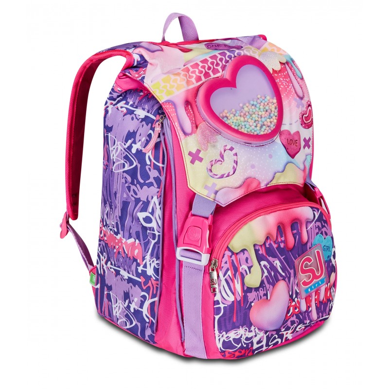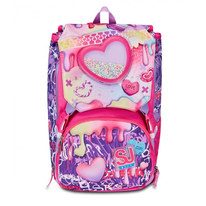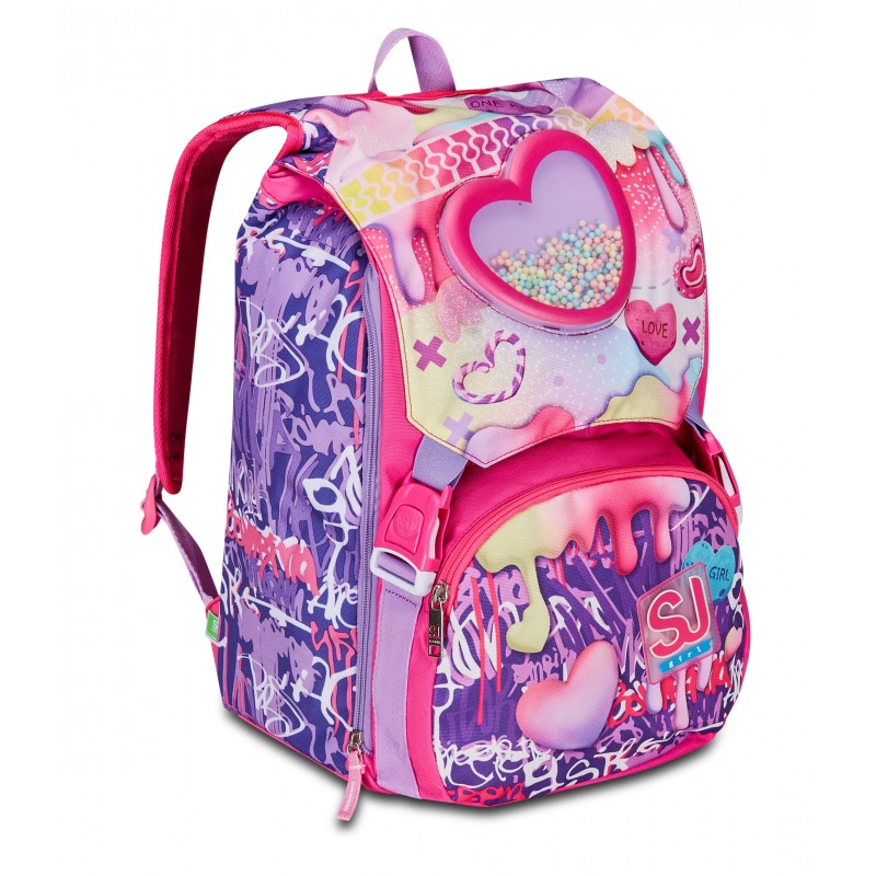 Ciao! Sono SPHERE FULL GIRL, lo zaino estensibile SJ GANG per la scuola e con cui puoi anche giocare! Fai muovere le palline all’interno del mio oblo sulla pattina e crea l’effetto WOW! Ho un doppio scomparto spazioso, di cui puoi aumentare facilmente la capienza tramite le zip laterali per poter accogliere e distribuire in modo ottimale libri, quaderni e tutto ciò che ti serve per la tua giornata, potendo sfruttare anche la tasca frontale. Inoltre, sono davvero comodo da indossare sulle spalle, grazie a schienale e spallacci confortevoli. In più, il fondo integrato mantiene la mia struttura inalterata, garantendo la stabilità del contenuto anche a pieno carico.